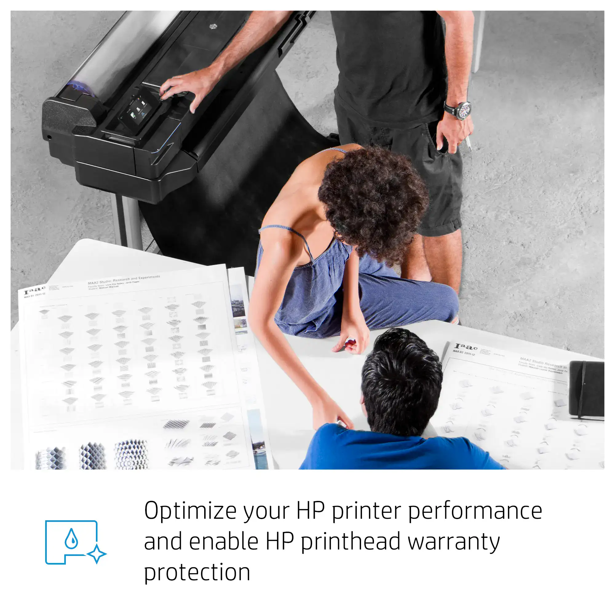 Optimize performance and enable HP printhead warranty protection. Genuine inks protect your investment.