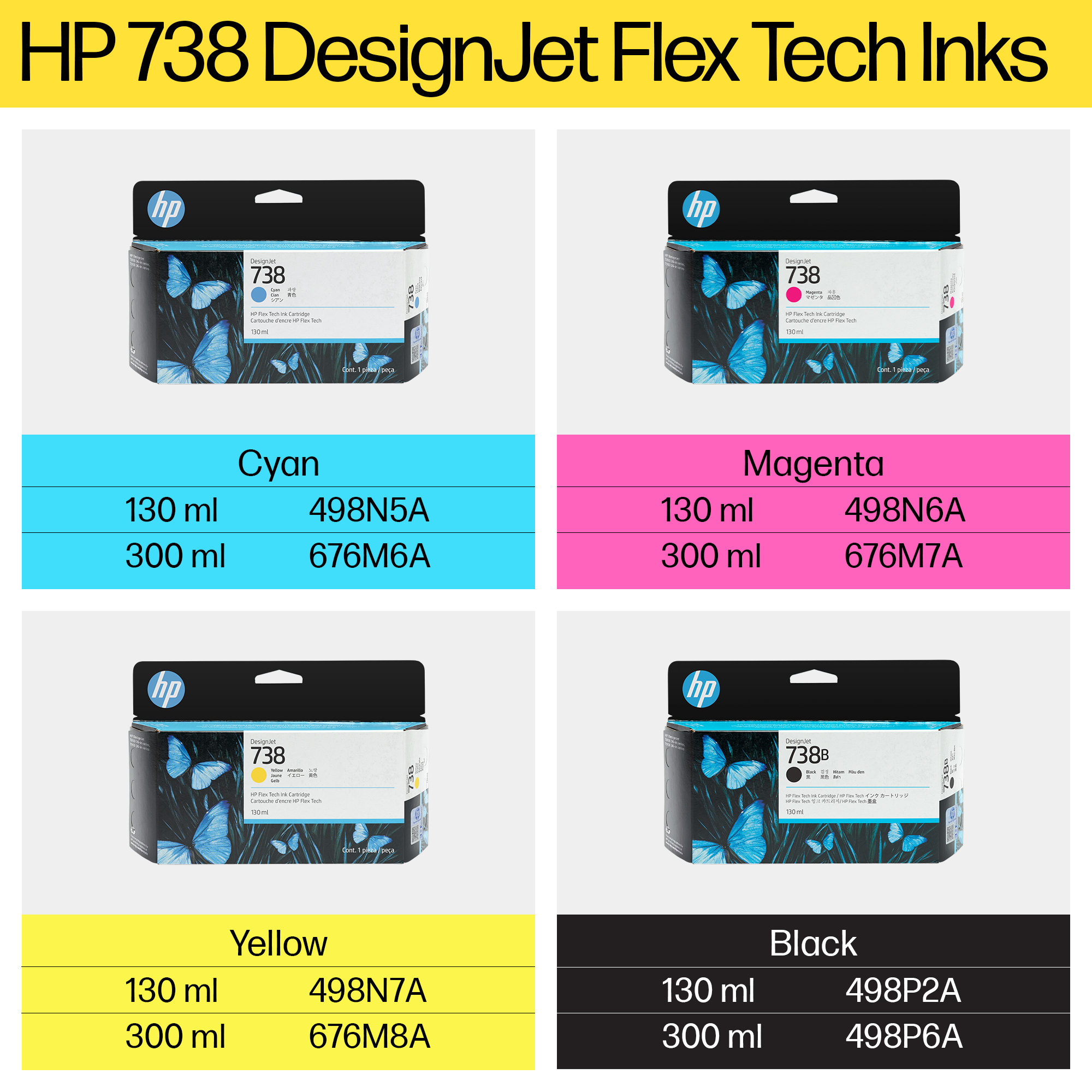 HP DesignJet 738 Flex Tech inks are advanced cartridges engineered for the T850 and T950 series. They deliver exceptional versatility, print quality, and durability for CAD drawings, blueprints, and marketing posters.